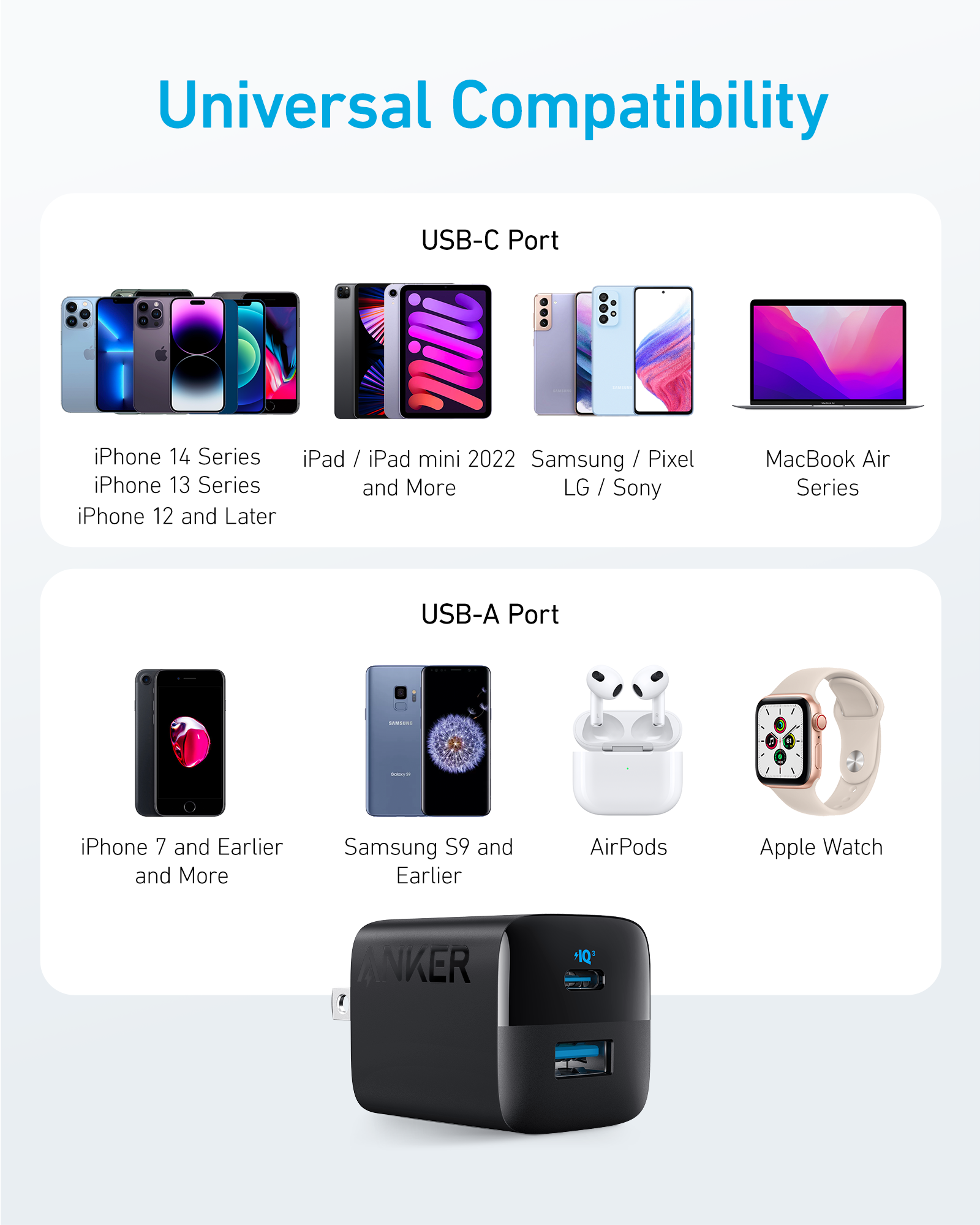 What You Get: Anker 323 Charger (33W), welcome guide, our worry-free 18-month warranty, and friendly customer service.