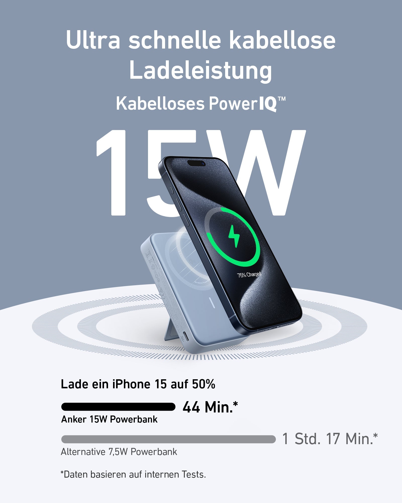 - Double Up on Speed: Enjoy 15W ultra-fast wireless charging and power up your devices 2X faster*. Get your iPhone 15 from 0 to 50% in just 44 minutes.