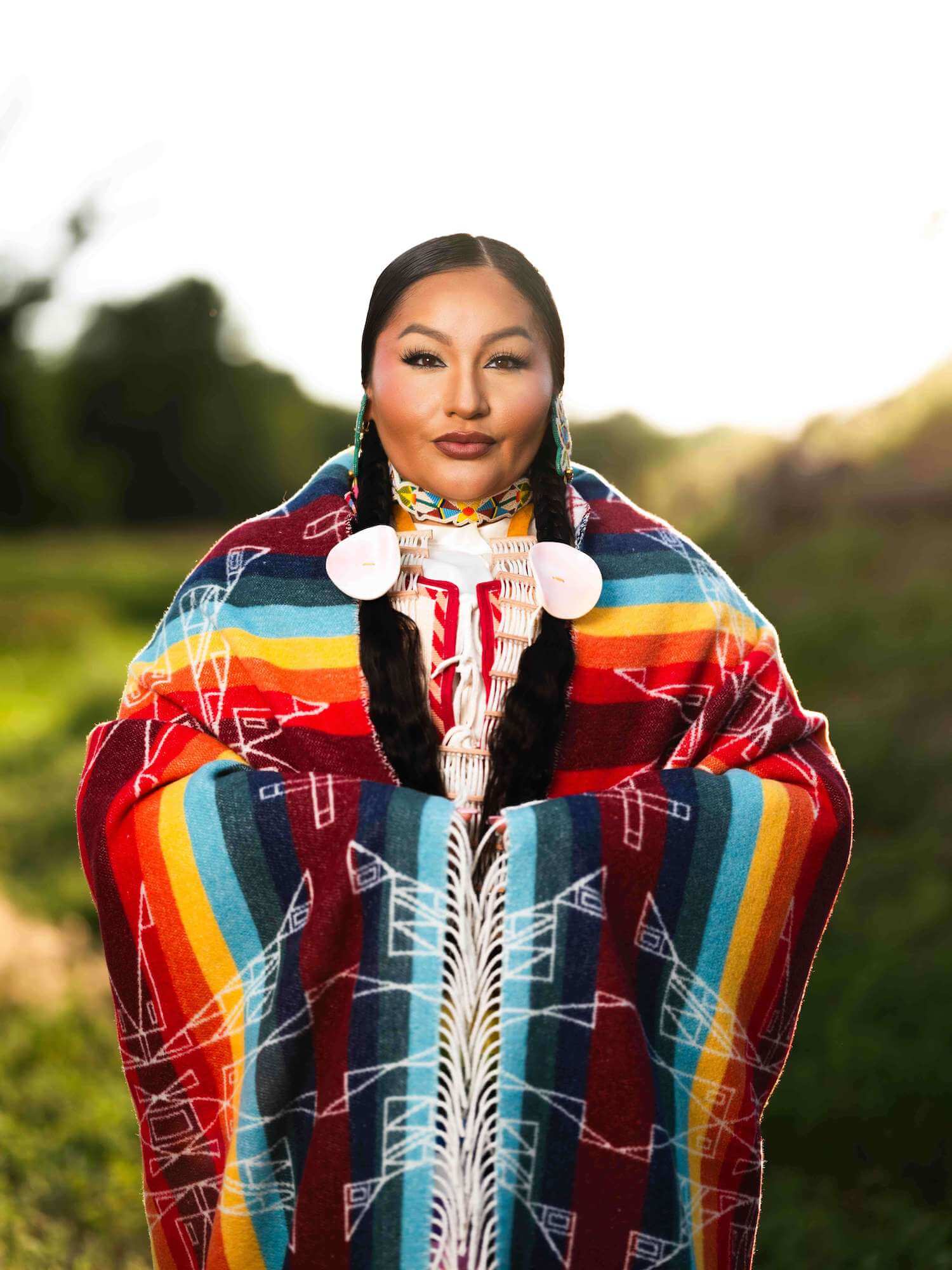 A beautiful blend of art and Indigenous heritage. Our Seasons Collection is a collaboration with multi-award-winning artist and fashion designer Lauren Good Day, also known as "Good Day Woman." Drawing from her Arikara, Hidatsa, Blackfeet, and Plains Cree roots, Lauren's work intertwines tradition and modernity.