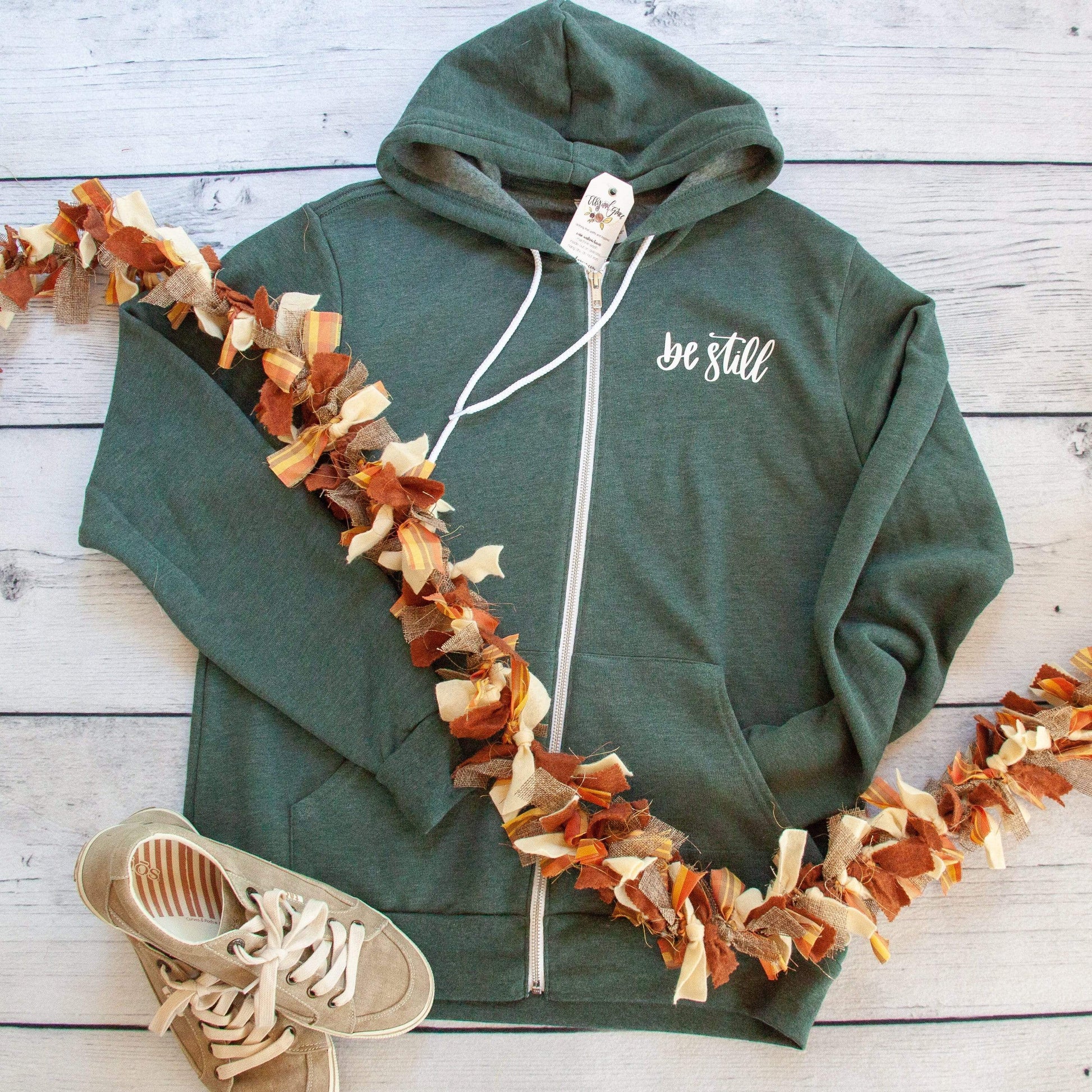 Be still and know! This is my favorite zip up design- because I always need the reminder. It's far too easy for me to get worked up and worried about every little thing instead of being still and knowing that GOD is GOD!
