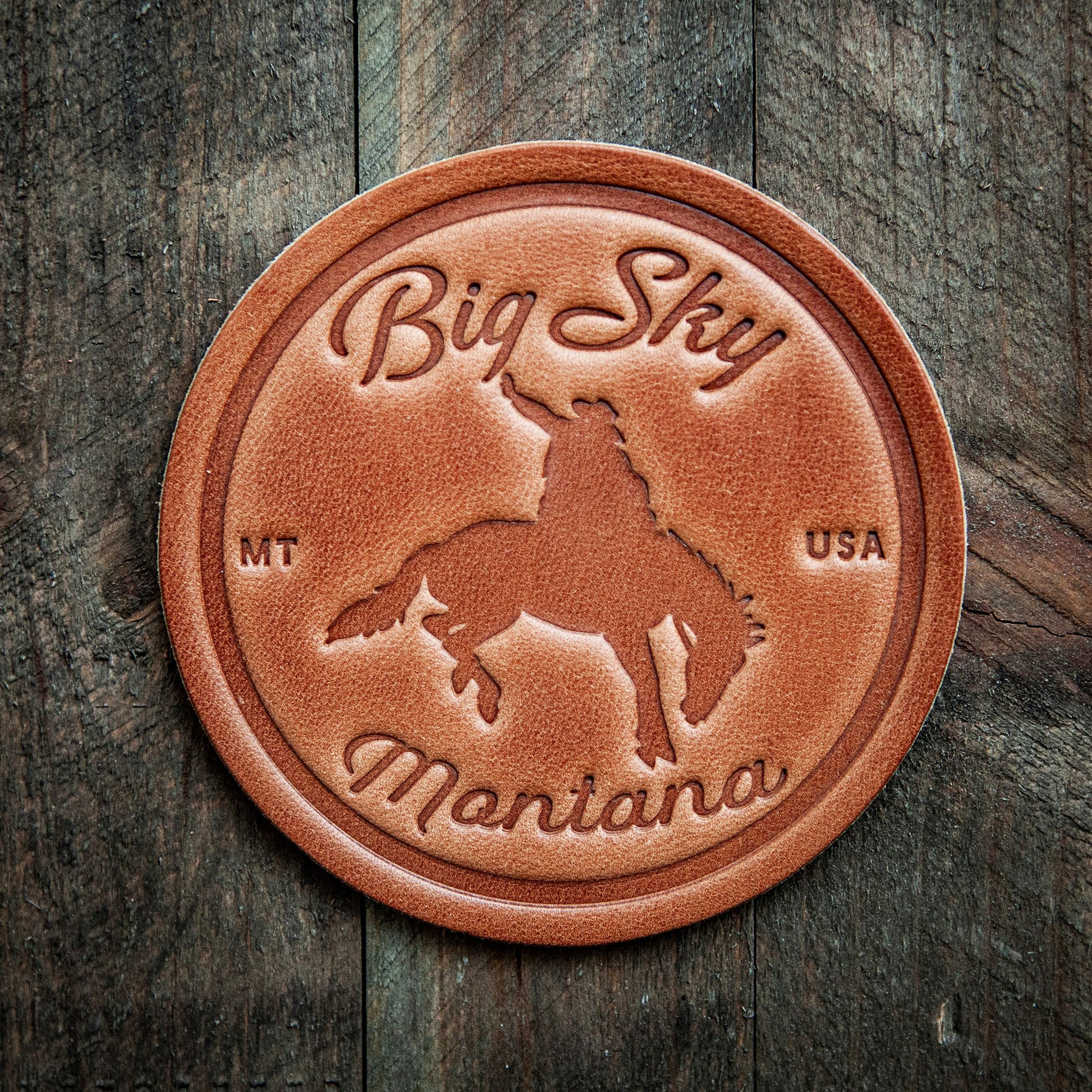 Big Sky Montana Bronco Leather Coaster