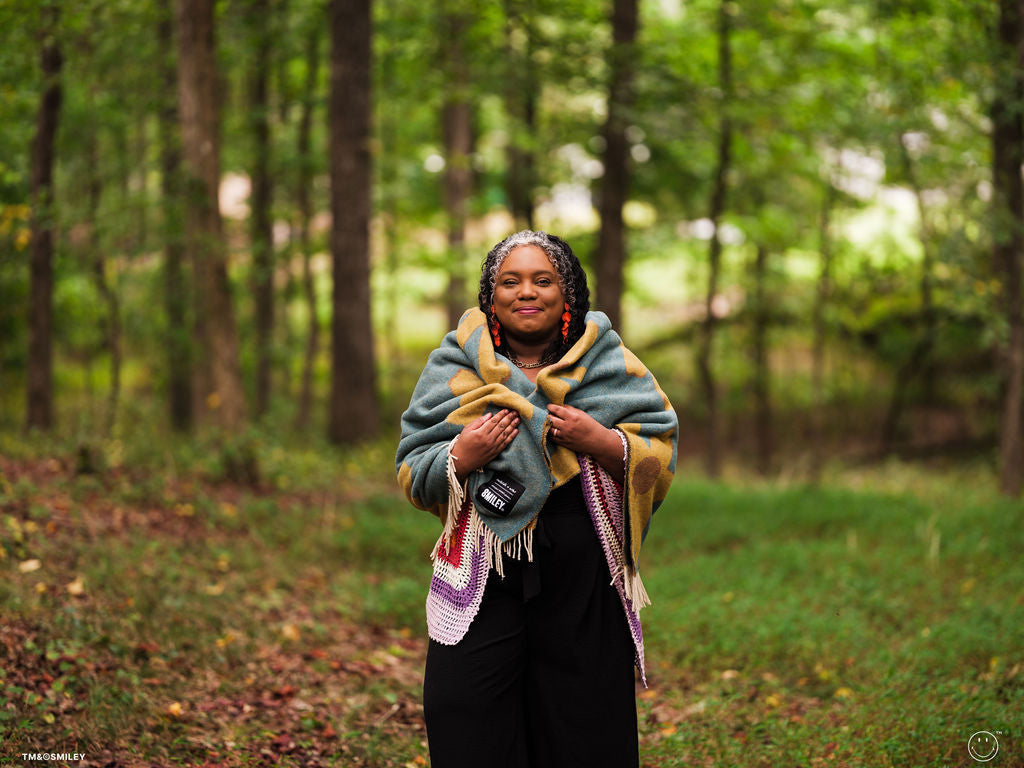Introducing the Bloom collection by poet, author, and multidisciplinary artist Morgan Harper Nichols, in partnership with Smiley Brand, a nonprofit organization dedicated to spreading positivity and kindness to make the world a happier place. Through this collaboration, Morgan Harper Nichols brings her unique blend of creativity and compassion to inspire joy and upliftment in every piece. For every blanket purchased a second blanket will be donated to your local homeless shelter.