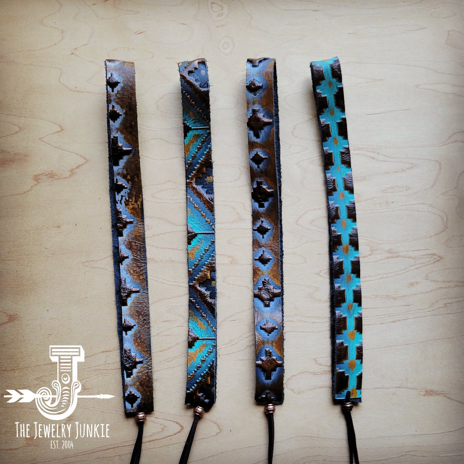 Blue Navajo Embossed Leather Hat Band Only 950a