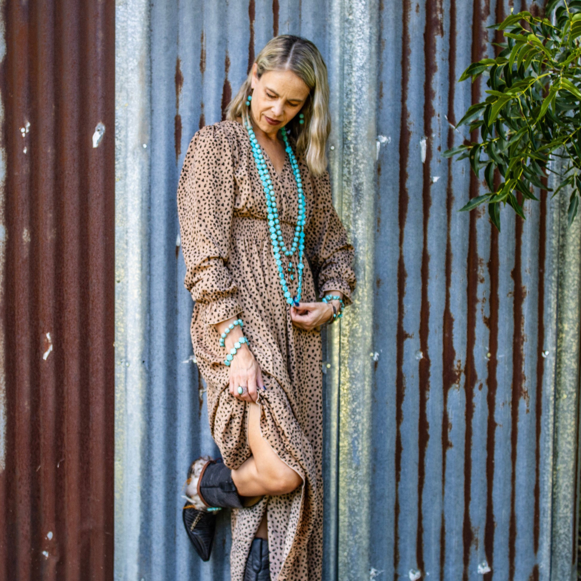- This turquoise stone necklace is the perfect item to layer with shorter necklaces and boho statement necklaces