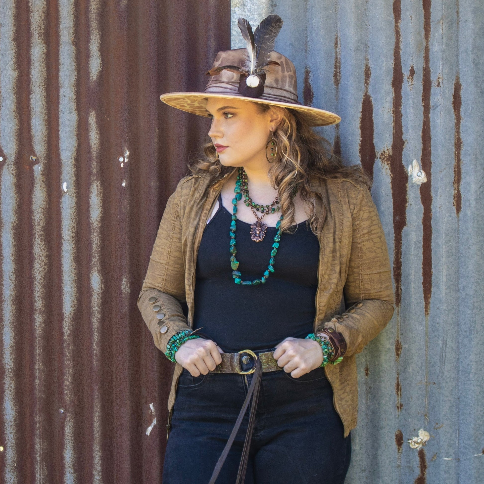 Expertly crafted with genuine natural turquoise, this chunky bracelet exudes a boho western style. Each piece is handcrafted to ensure its authenticity and unique beauty. Elevate your look with this stunning bracelet, perfect for any occasion.