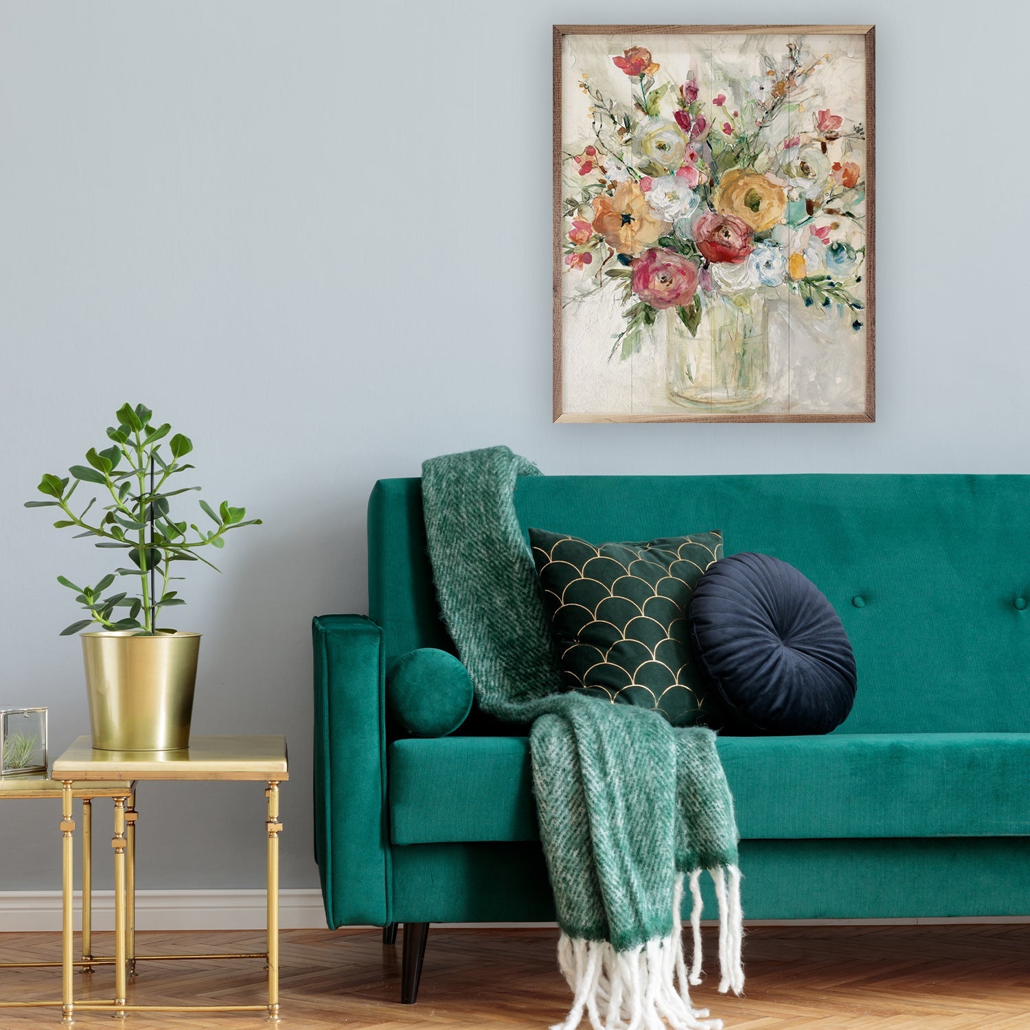 Featuring a solid wood insert with intricate botanical designs, this piece is framed in rich walnut to highlight the natural wood grain. Its elegant craftsmanship and universal appeal make it a stunning addition to any décor, offering timeless style and quality.
