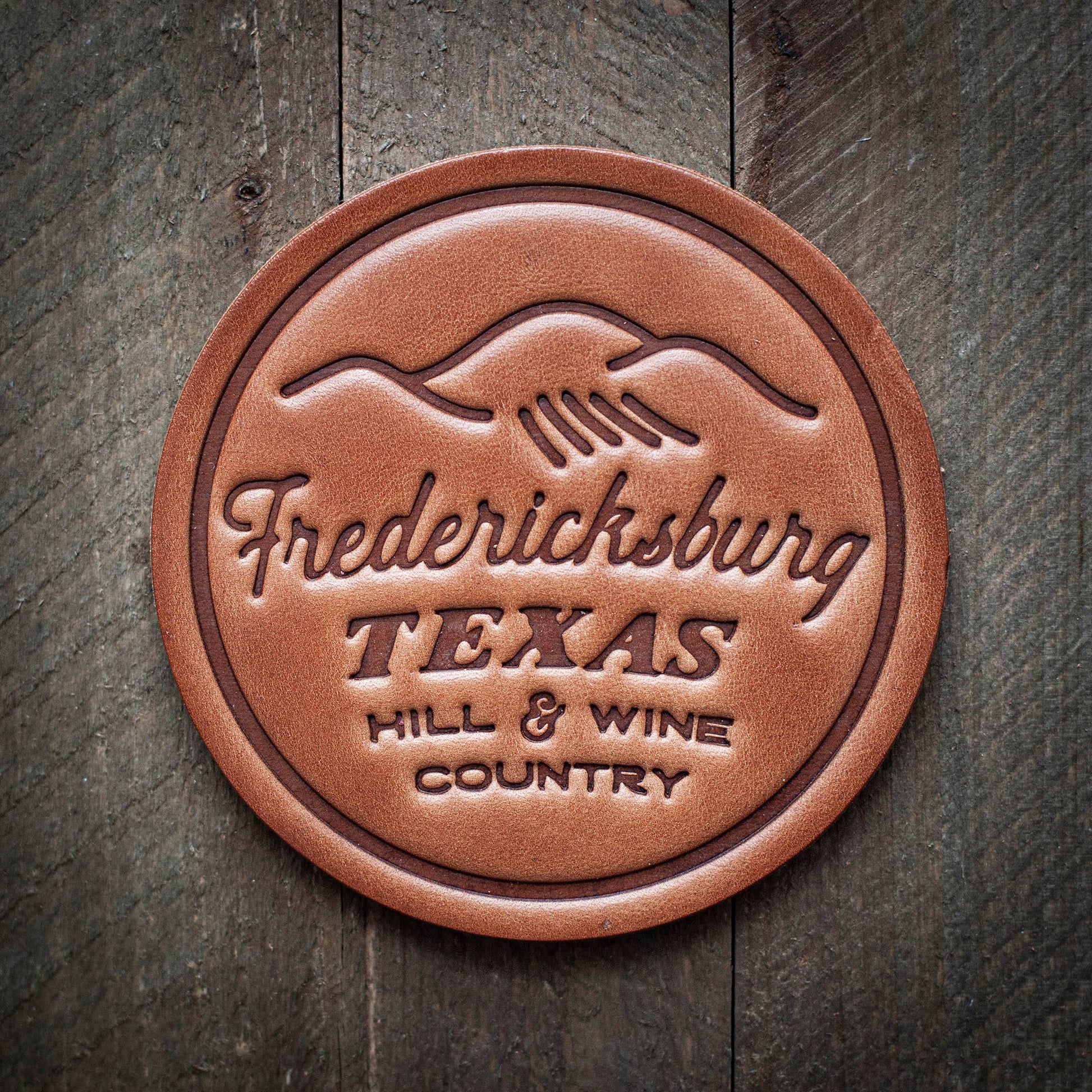 Fredericksburg Texas Hill & Wine Country Leather Coaster