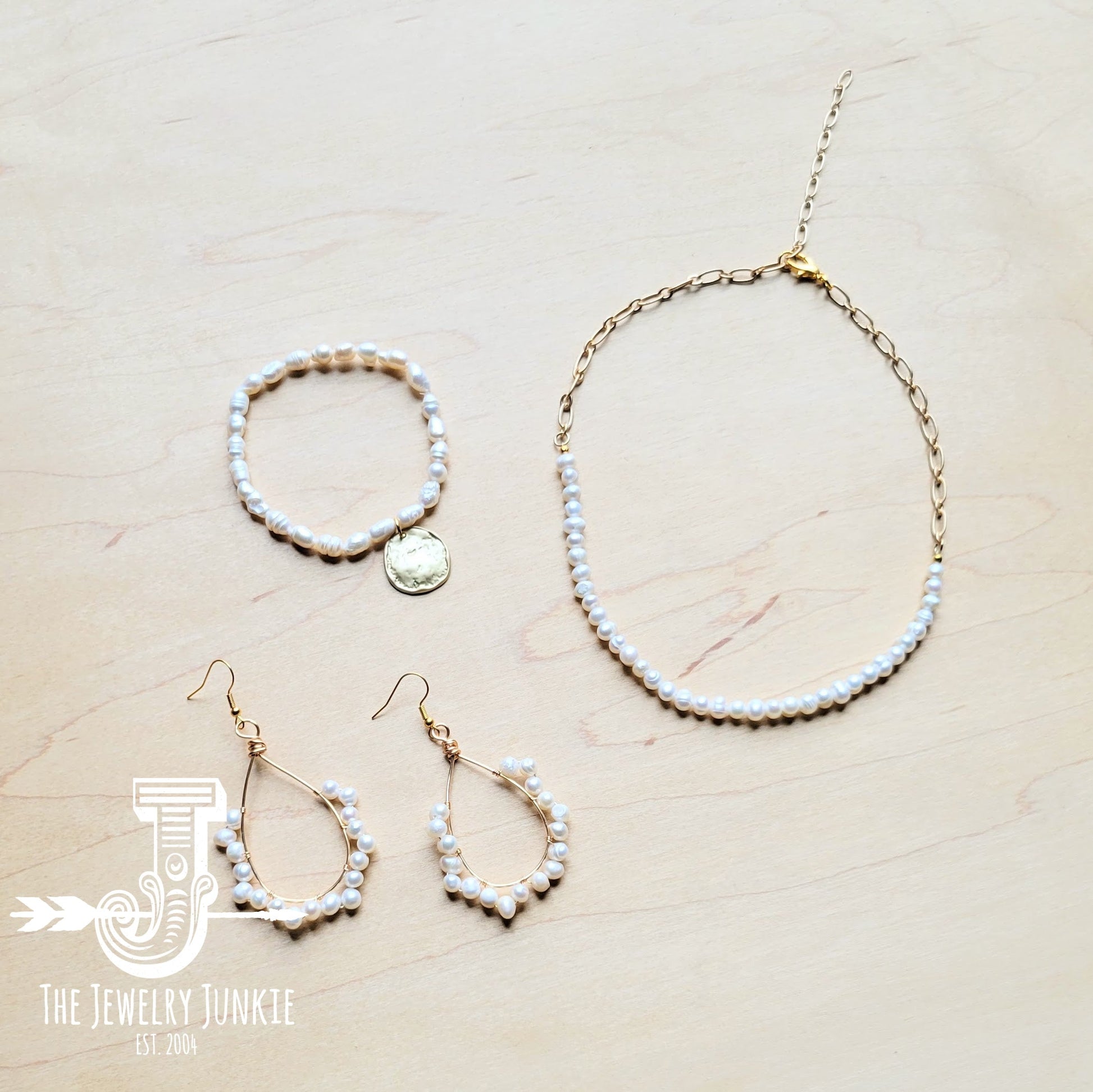 Wrap your wrist in luxury with our Freshwater Pearl Bracelet. Handmade in Texas, each bracelet boasts genuine freshwater pearls paired with a chic matte gold coin. Elevate your style and sophistication with this distinctly elegant accessory.