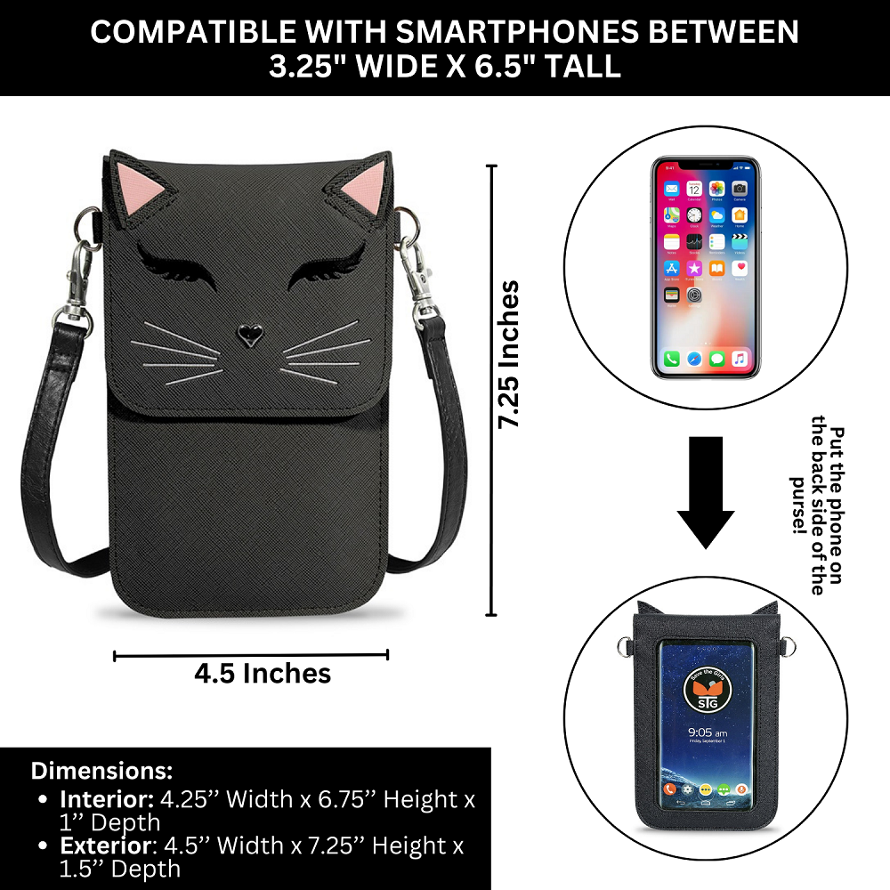 The Fun Cat purse is designed for cat enthusiasts who want to showcase their love for felines while enjoying modern convenience. This touch screen purse features a playful cat design, allowing you to use your smartphone without removing it from the purse. Its compact size and adjustable strap make it perfect for daily use, adding a whimsical touch to any outfit.