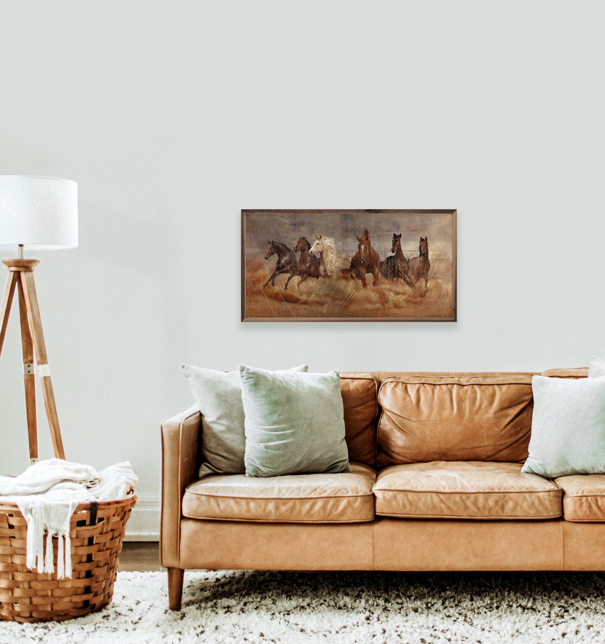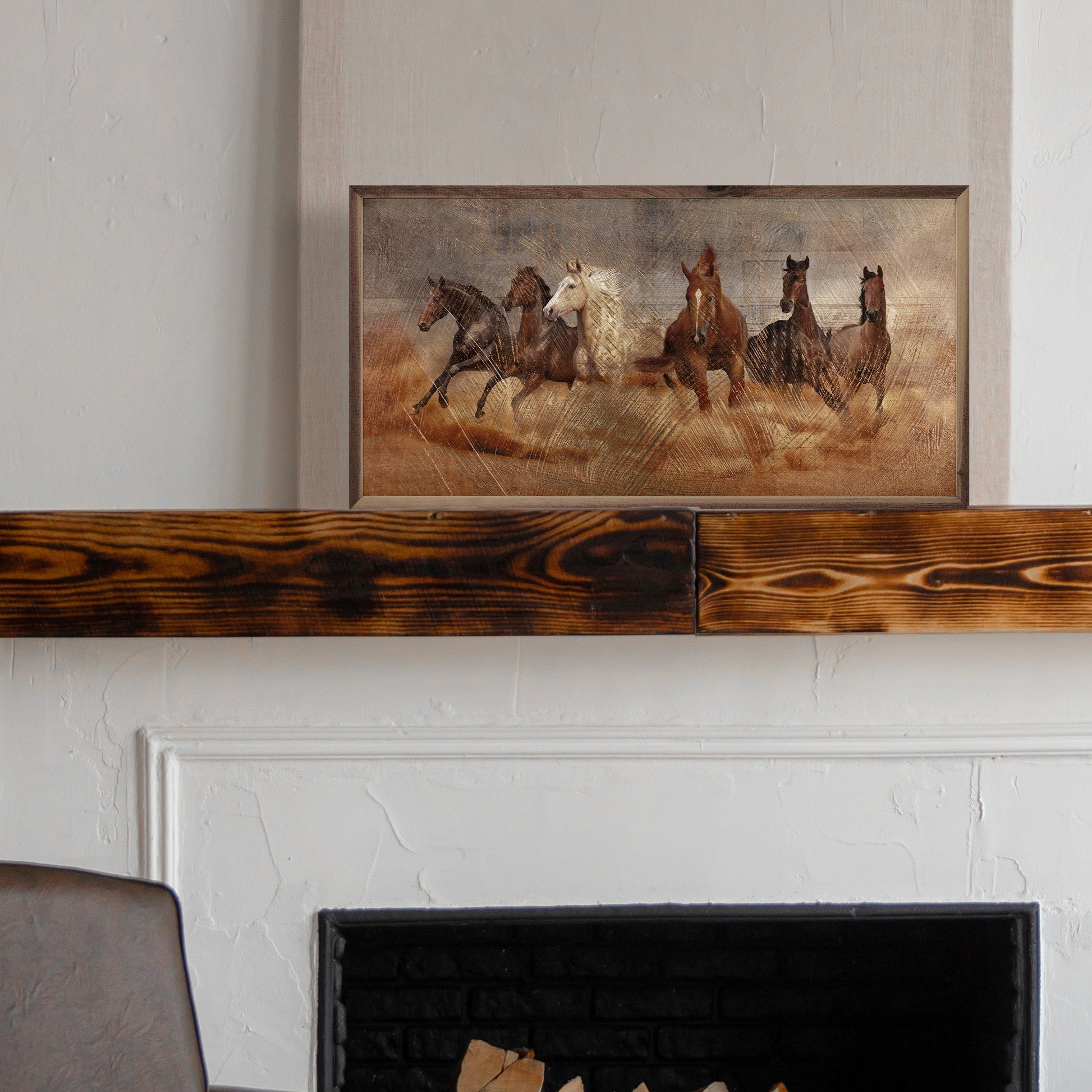 This unique piece is a simple way to bring beauty and charm to any wall or shelf within the home. It is made from high quality American hardwood planks with a hand painted face, and printed with UV cured ink, and is framed in a natural walnut frame. Each piece is unique with its own personality, marks, wood grain, and look. Easy to clean with a dry cloth.