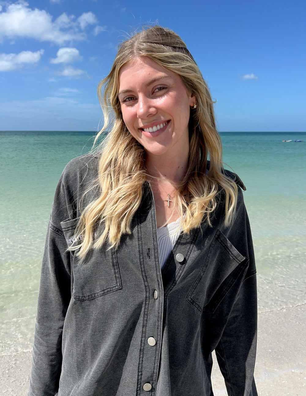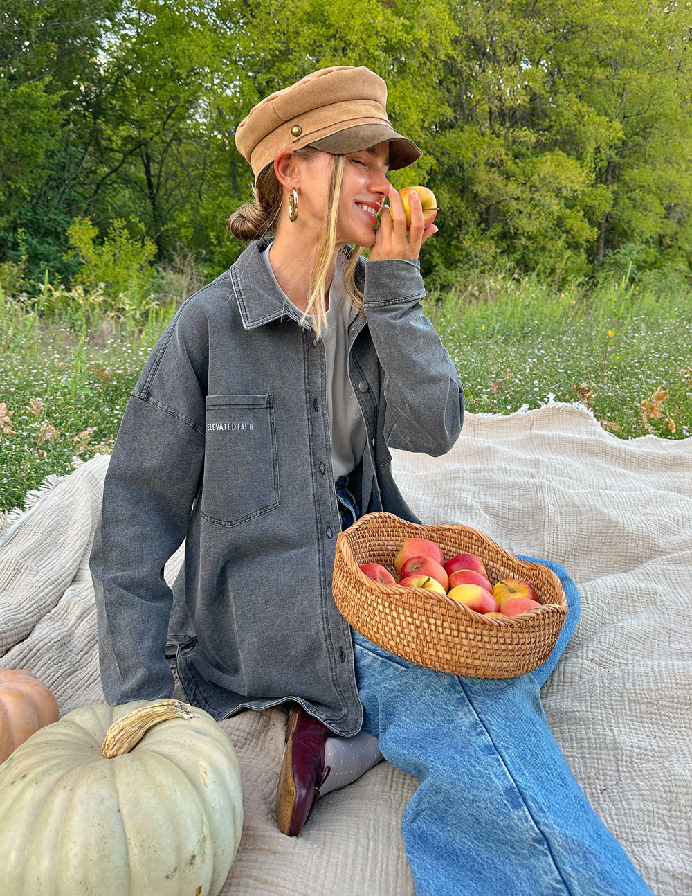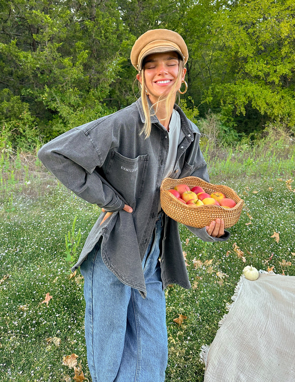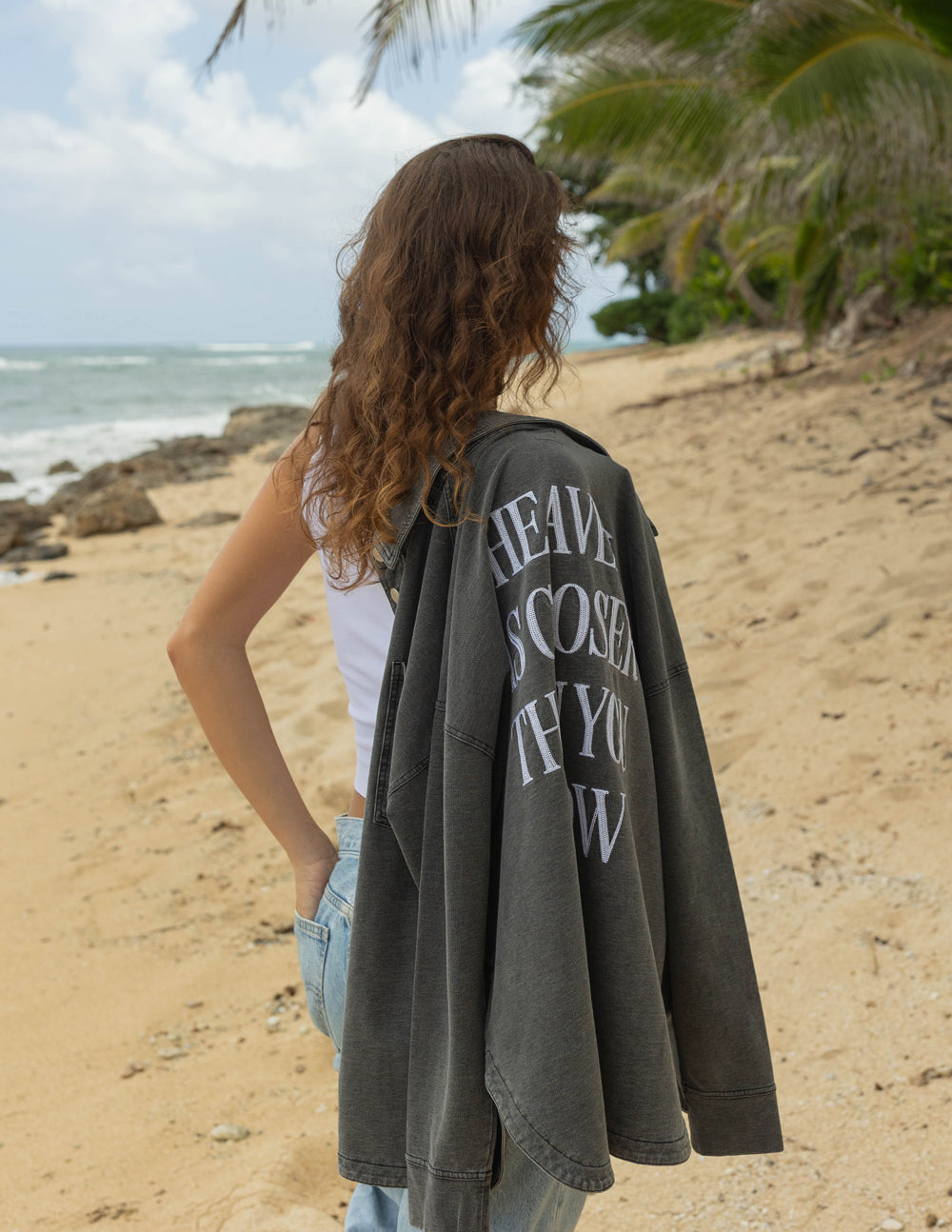 Introducing our new shacket, a cozy combo of comfort and style. Featuring oversized patch pockets, a curved hem, and embroidery details, this layer will fit perfectly into your current wardrobe. In stretchy, distressed french terry, the shacket is as soft as your favorite EF hoodie - in a fresh, relaxed silhouette.