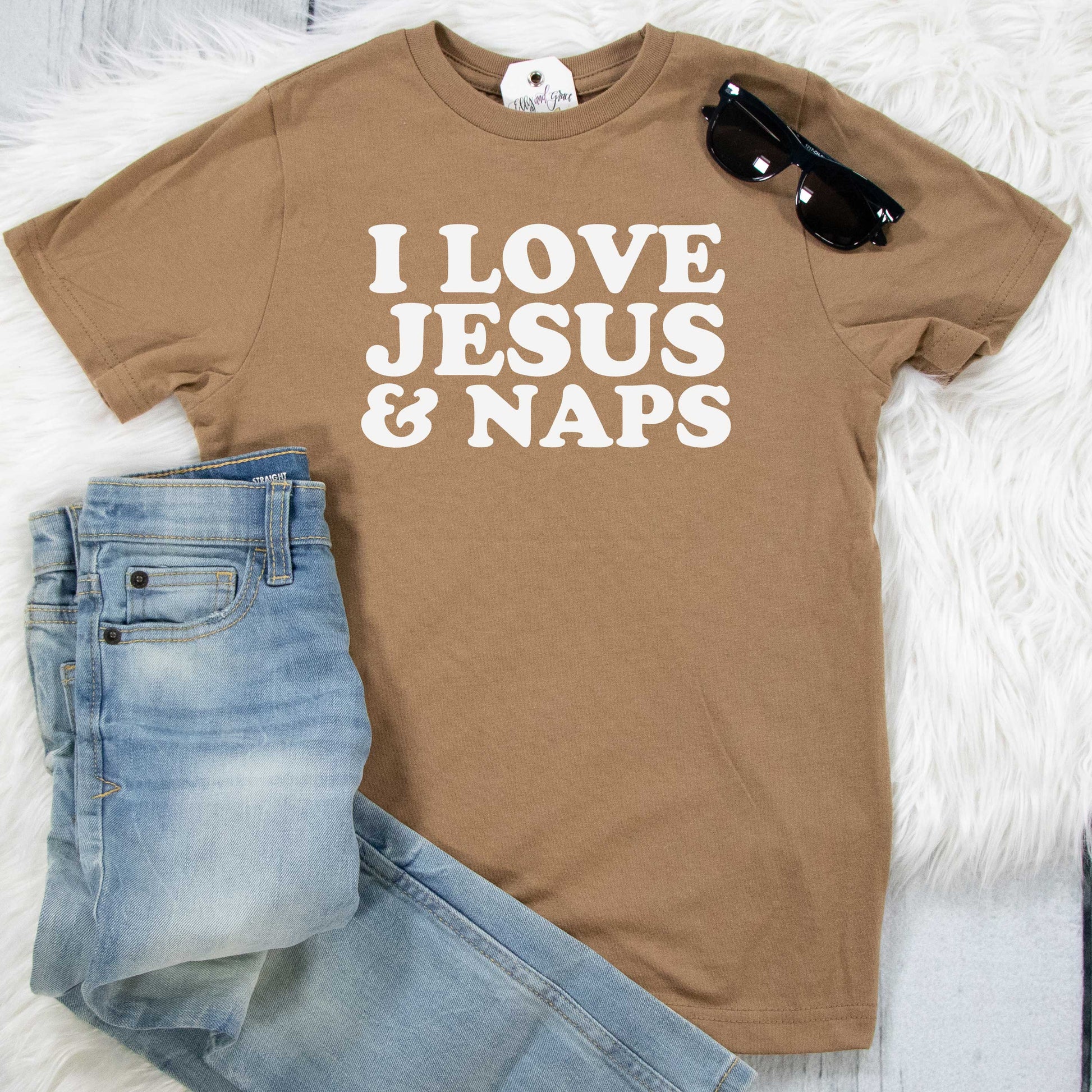 Kids love Jesus and naps too! This unisex sized tee is super soft and cozy- they're going to love it!