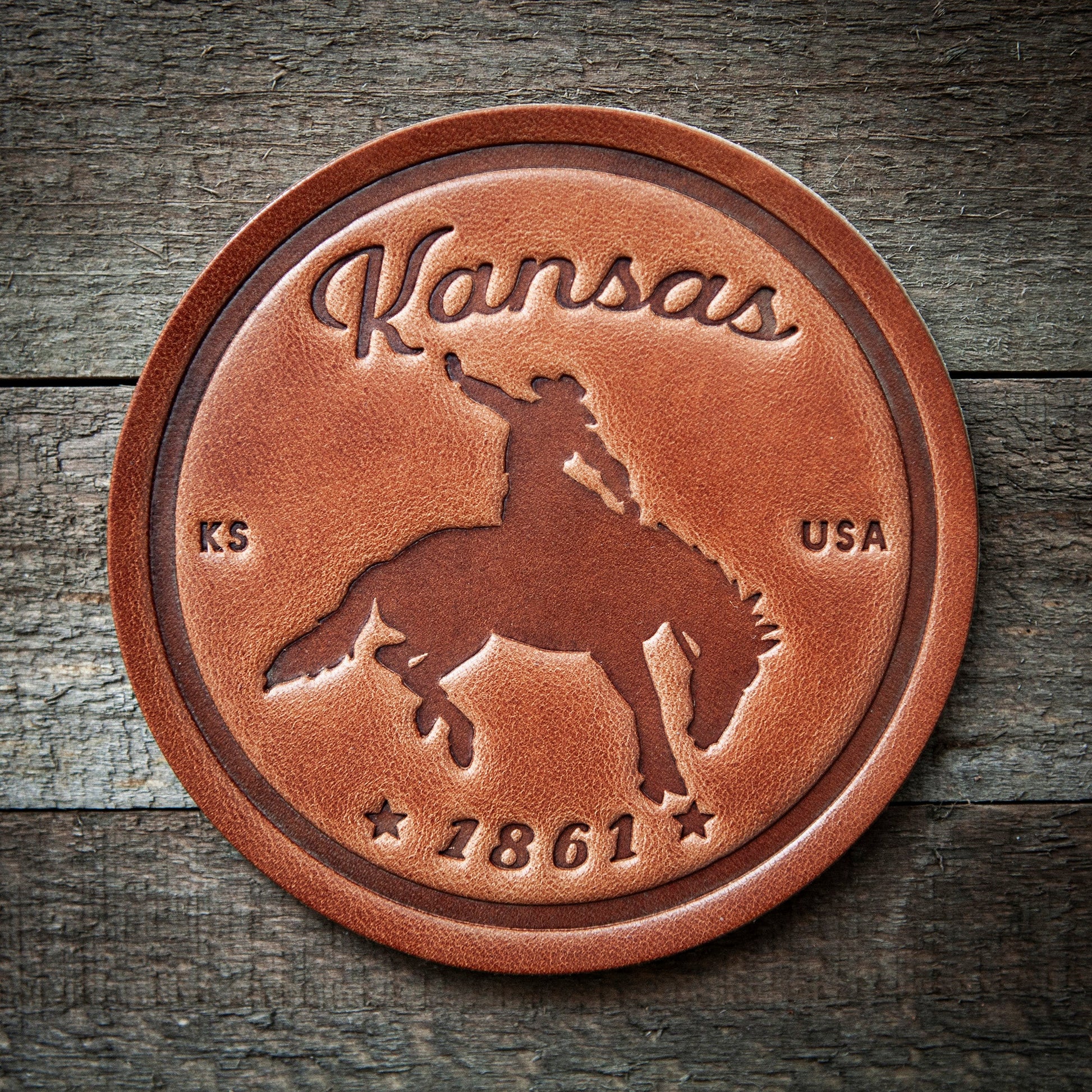 Kansas Bronco Leather Coaster