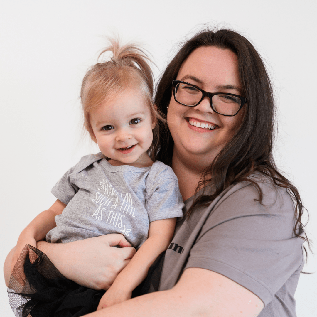 - Grace is wearing 12 months in Lavender and 18 months in Heather