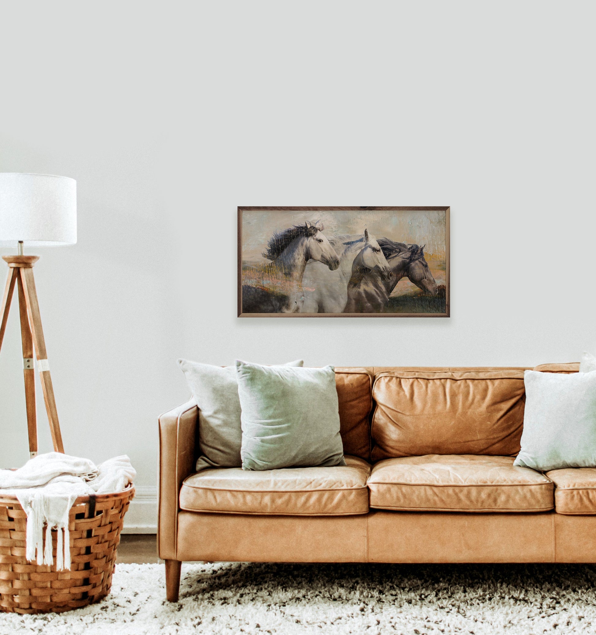 This unique piece is a simple way to bring beauty and charm to any wall or shelf within the home. It is made from high quality American hardwood planks with a hand painted face, and printed with UV cured ink, and is framed in a natural walnut frame. Each piece is unique with its own personality, marks, wood grain, and look. Easy to clean with a dry cloth.