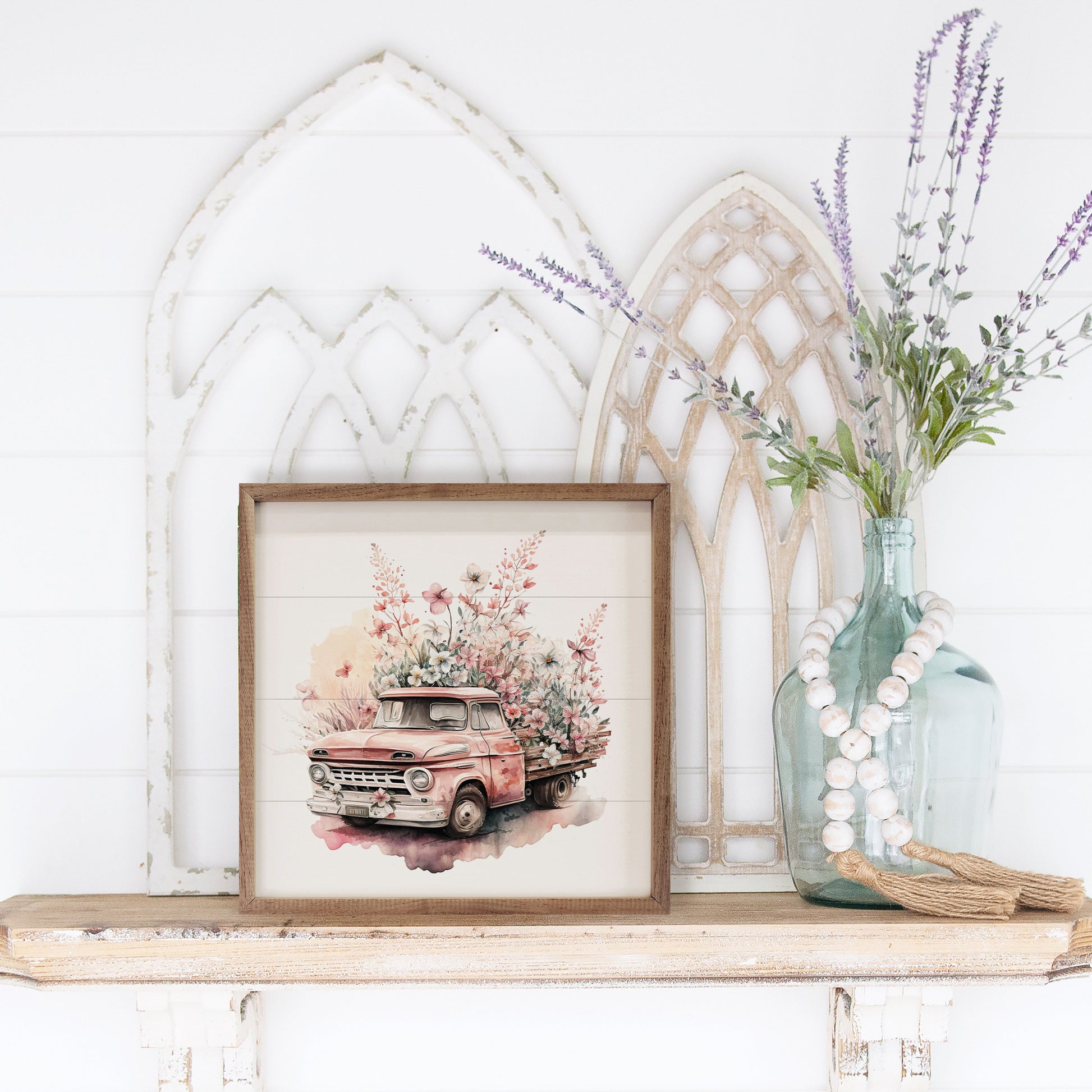 This unique piece is a simple way to bring beauty and charm to any wall or shelf within the home. it is made from high quality American hardwood planks with a hand painted face, and printed with UV cured ink, and is framed in a natural walnut frame. Each piece is unique with its own personality, marks, wood grain, and look. Easy to clean with a dry cloth.