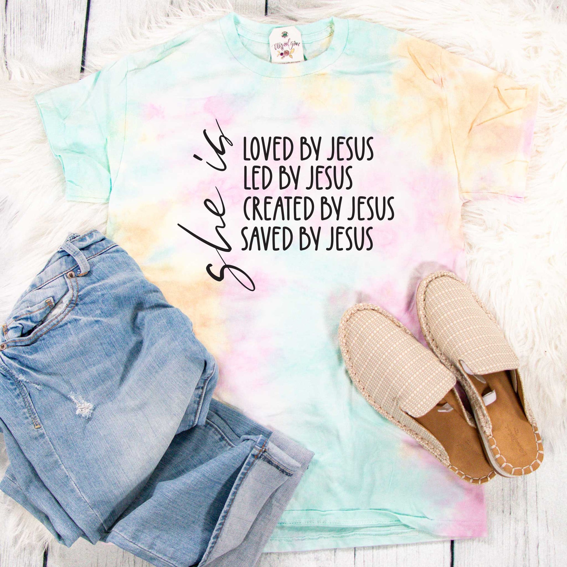 This is the perfect shirt for that Jesus and Tie Dye loving lady!
