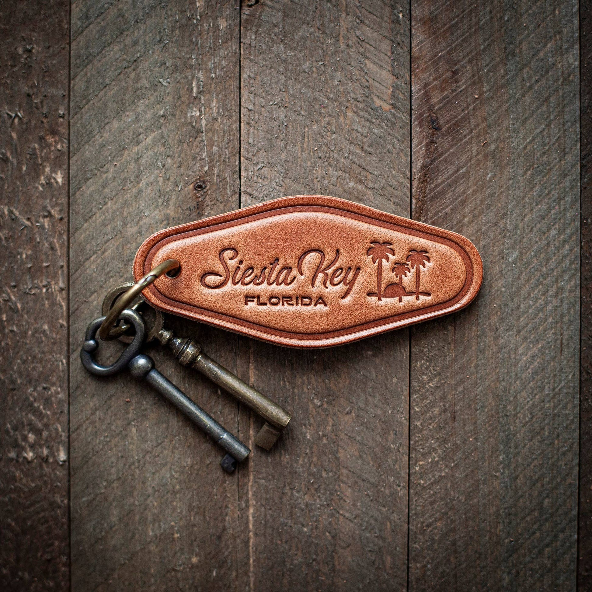 Siesta Key Florida Leather Keychain Motel Style
