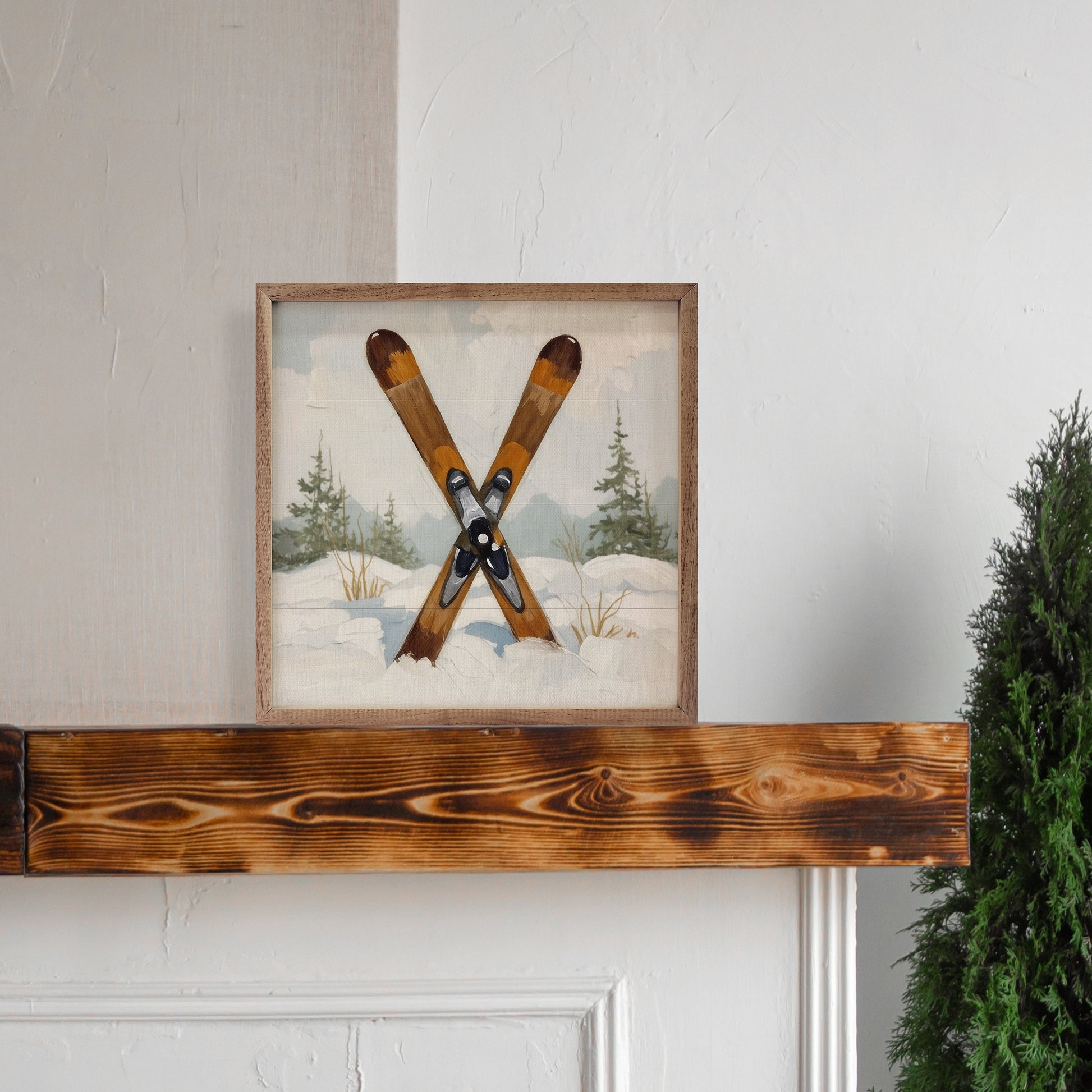 Skis in the Snowy Pines