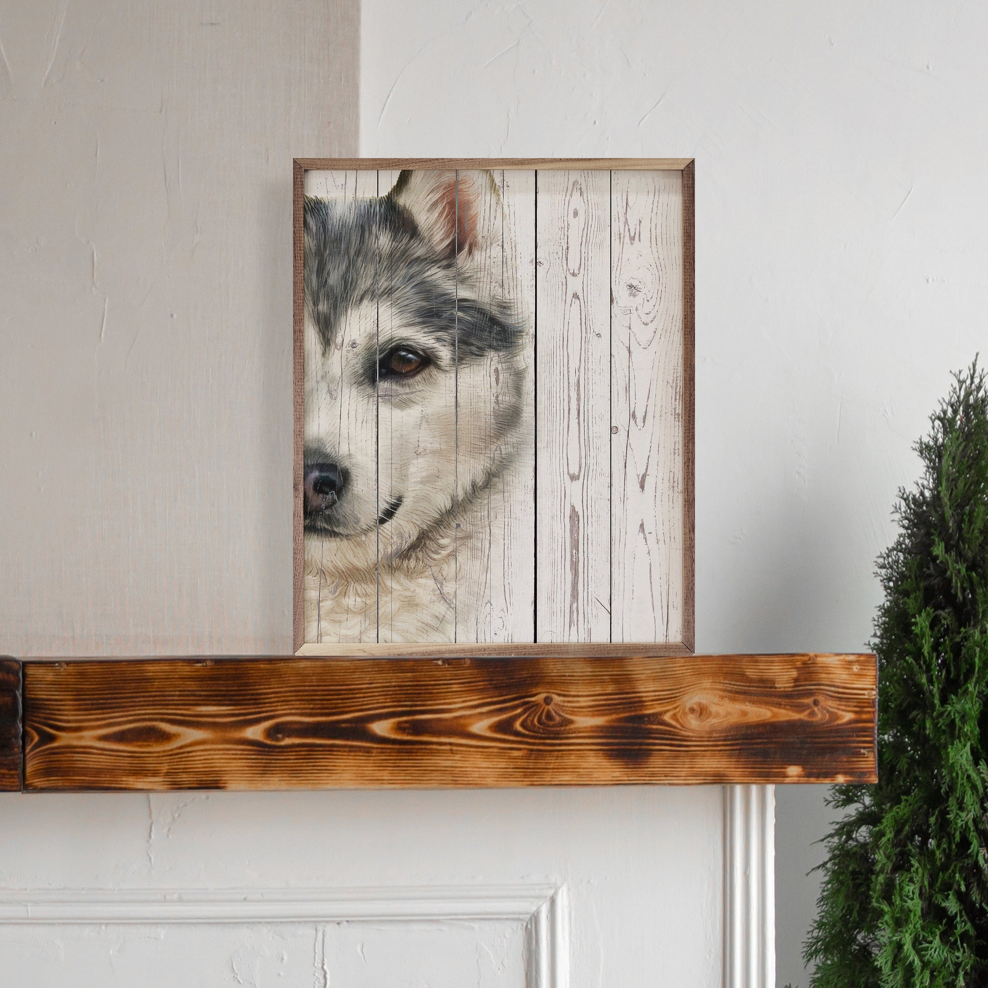 This unique piece is a simple way to bring beauty and charm to any wall or shelf within the home. It is made from high quality American hardwood planks with a hand painted face, and printed with UV cured ink, and is framed in a natural walnut frame. Each piece is unique with its own personality, marks, wood grain, and look. Easy to clean with a dry cloth.