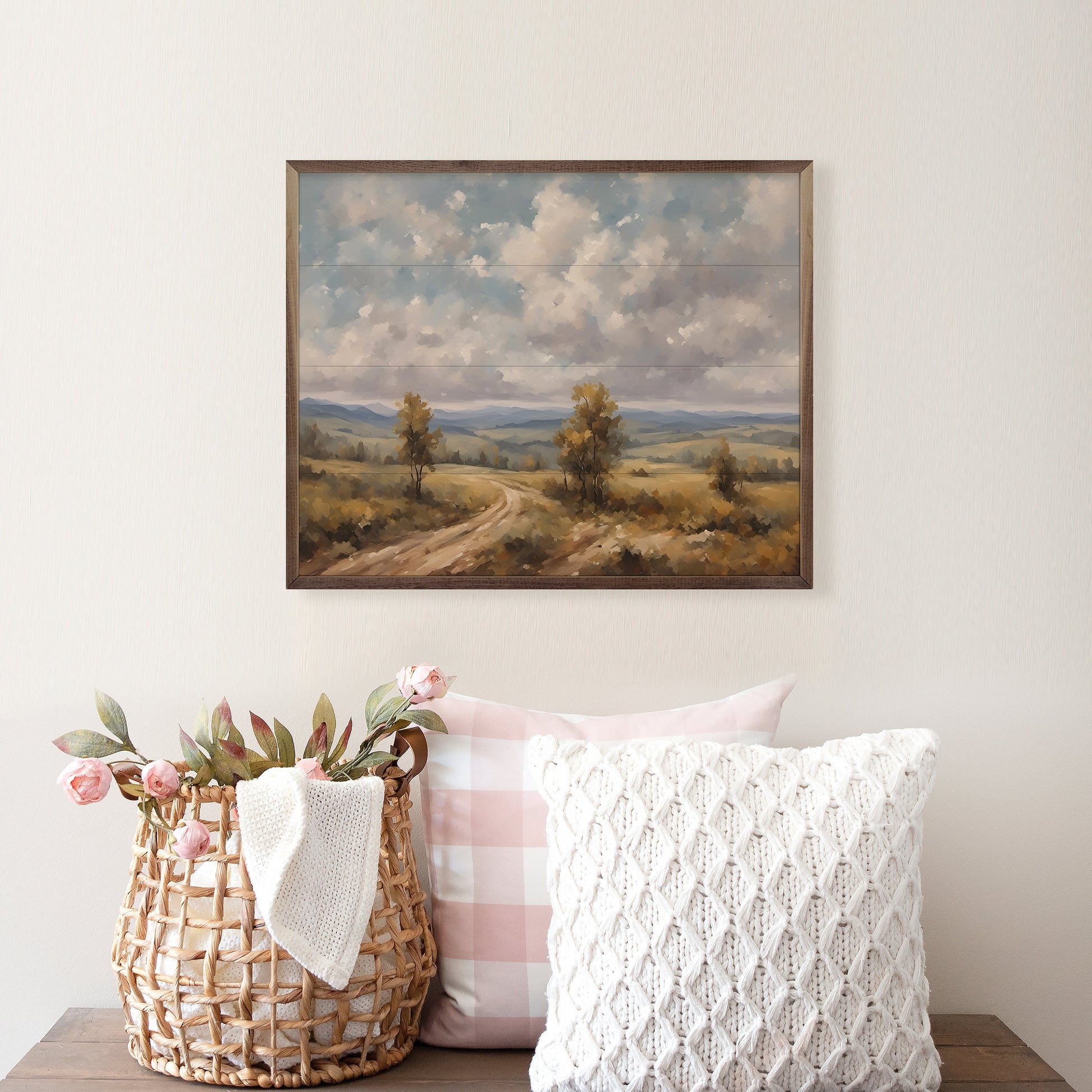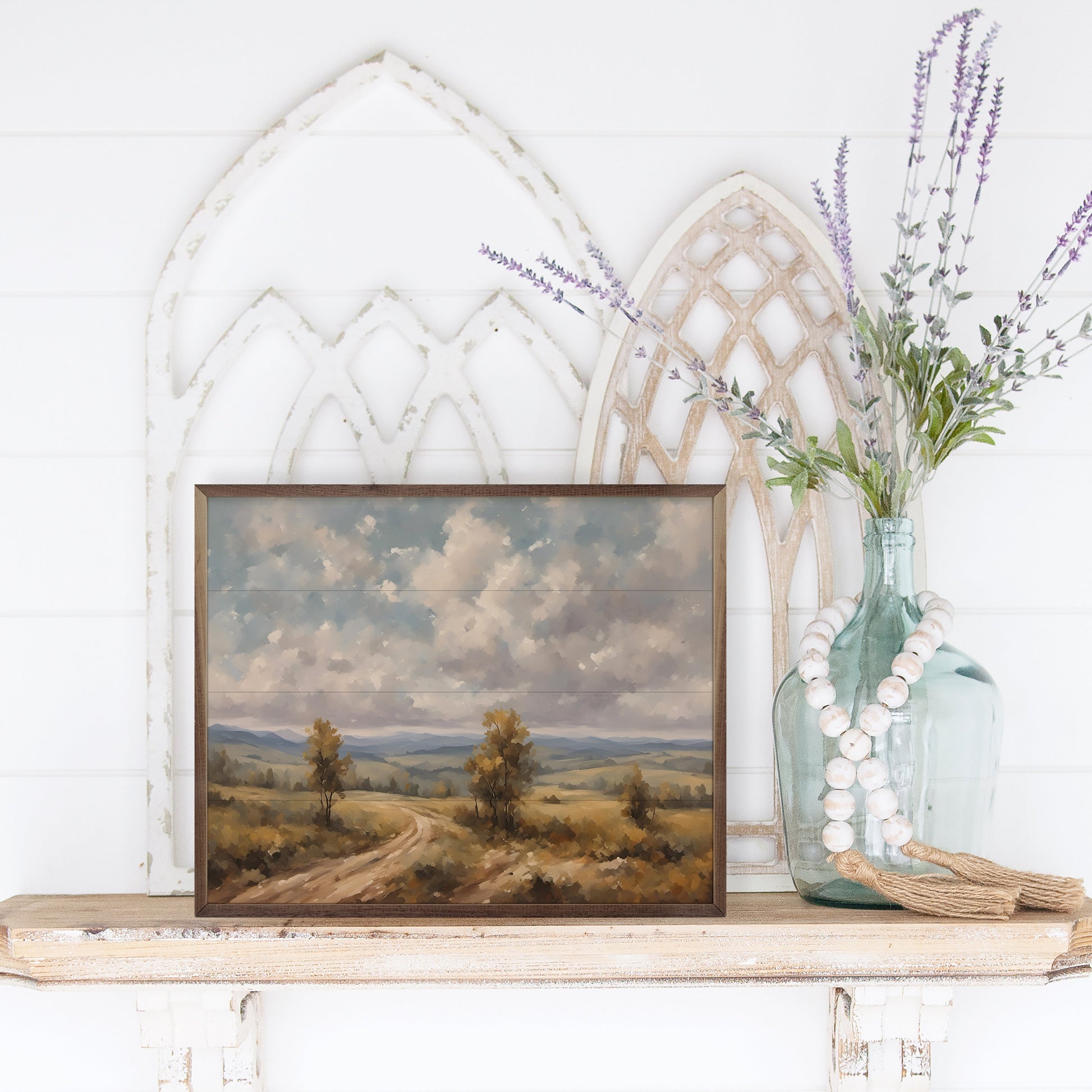 This unique piece is a simple way to bring beauty and charm to any wall or shelf within the home. It is made from high quality American hardwood planks with a hand painted face, and printed with UV cured ink, and is framed in a natural walnut frame. Each piece is unique with its own personality, marks, wood grain, and look. Easy to clean with a dry cloth.