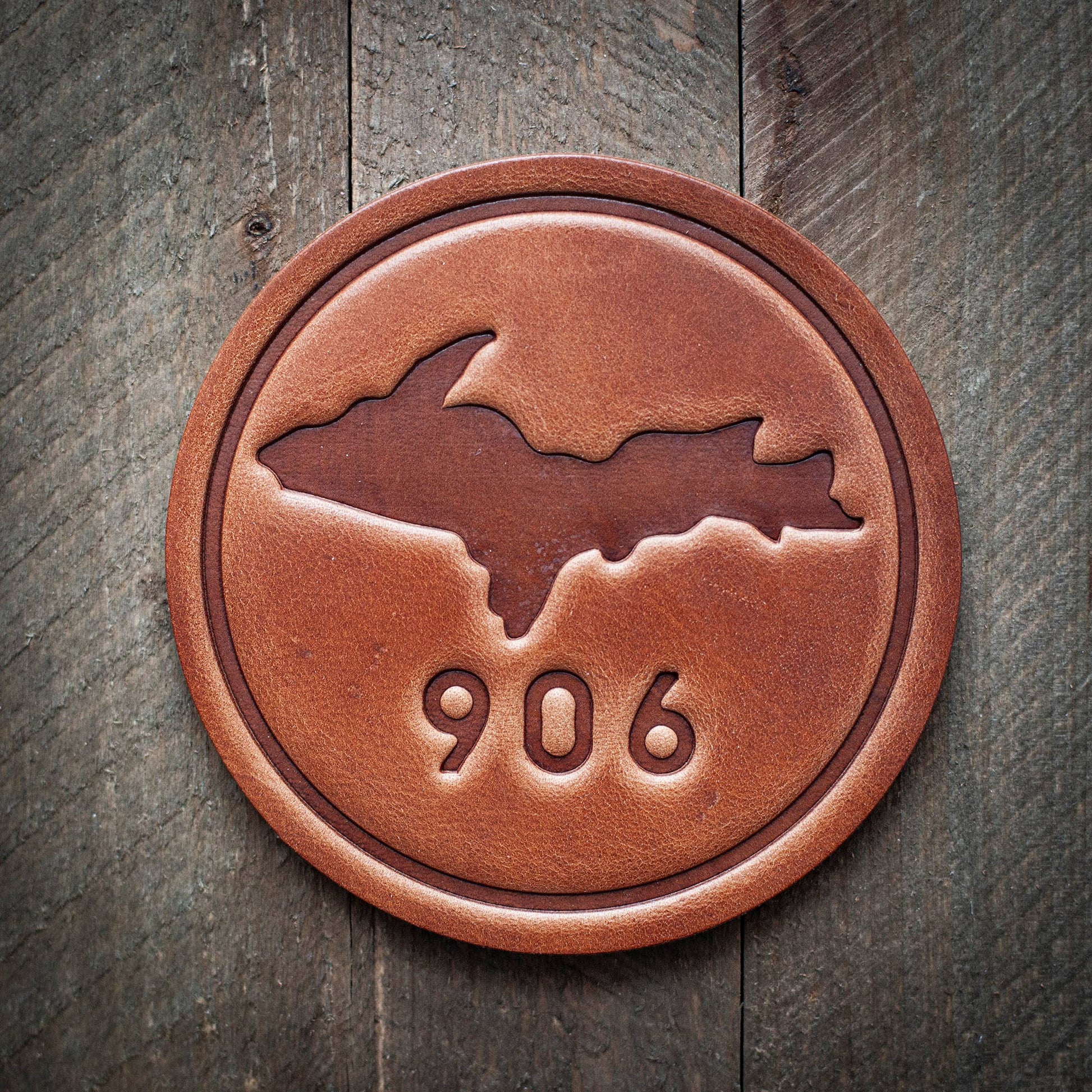 Upper Peninsula Michigan 906 Leather Coaster