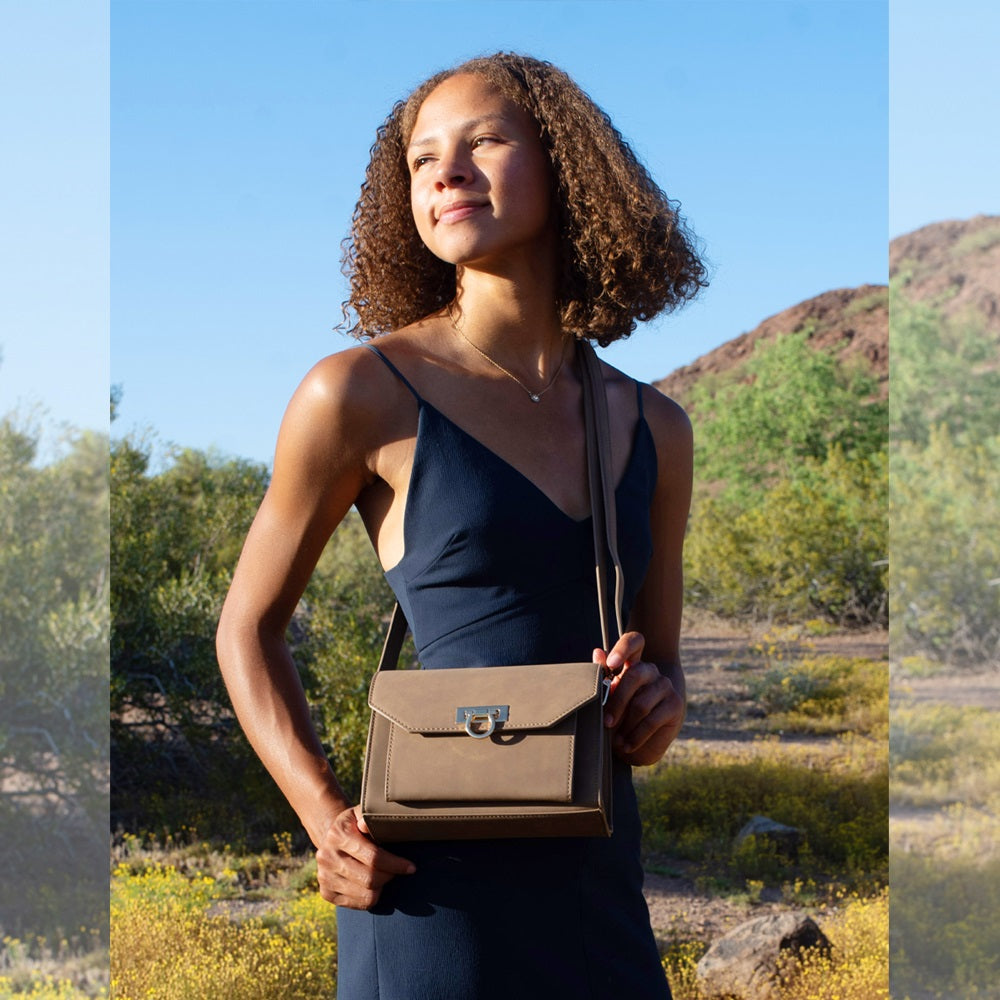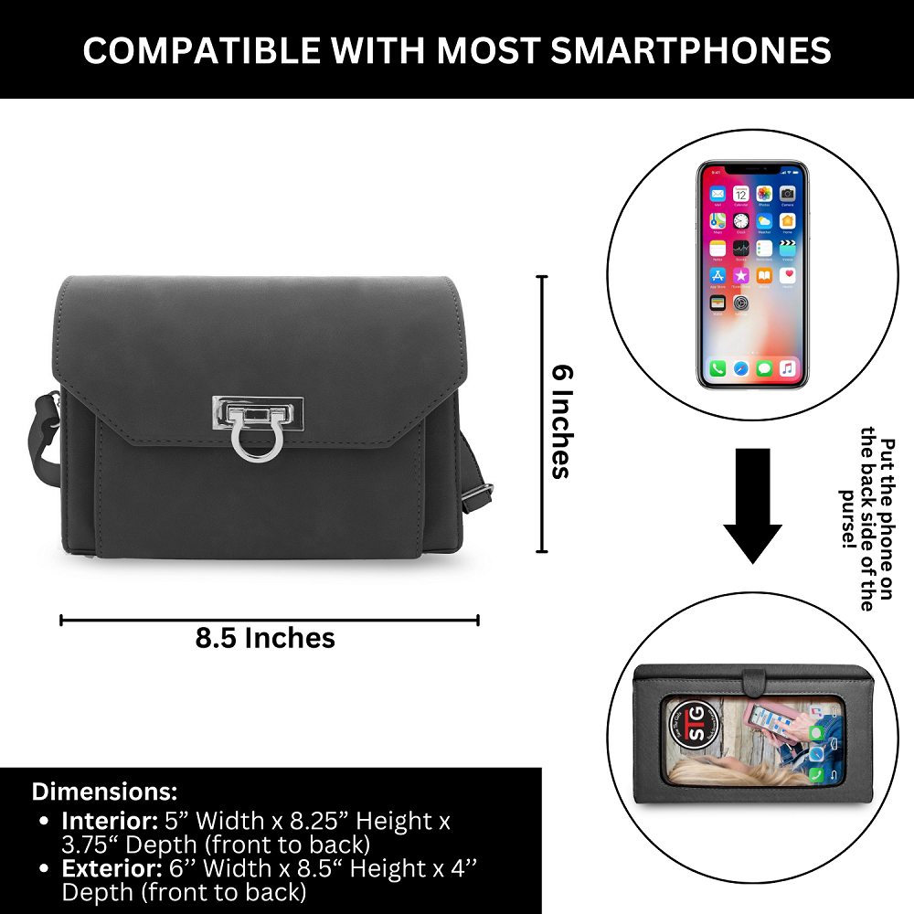 The Venesia RFID purse is the perfect touchscreen bag for everyday needs. It combines functional design with elegant styling, featuring a roomy main pocket for essentials, an interior zippered pocket, two cash pockets, and six RFID-protected credit card slots. The phone pocket is conveniently located on the outside of the purse, providing easy access.
