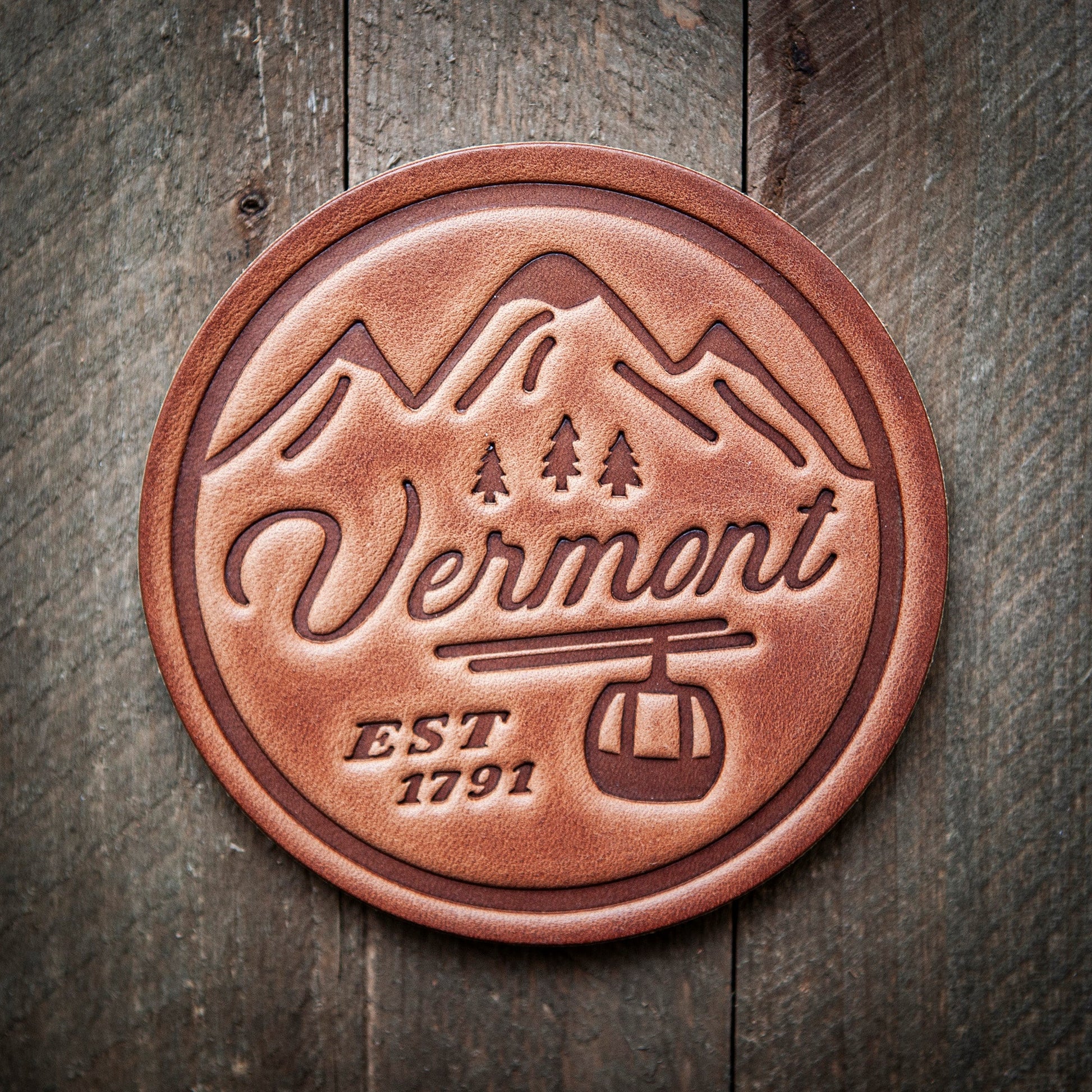 Vermont Ski Gondola Leather Coaster