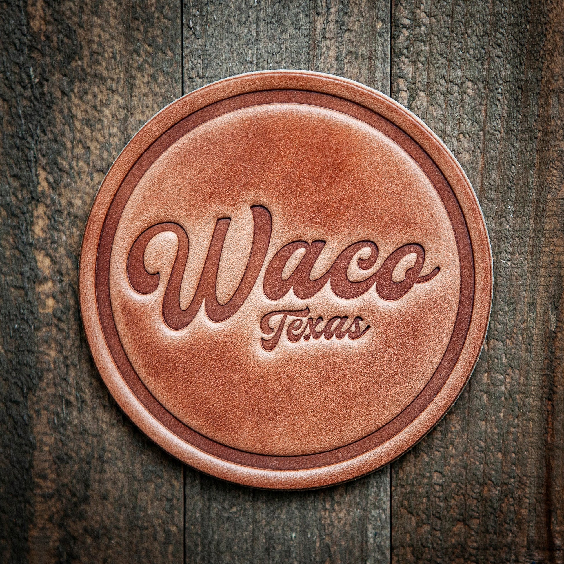 Waco Texas Script Leather Coaster