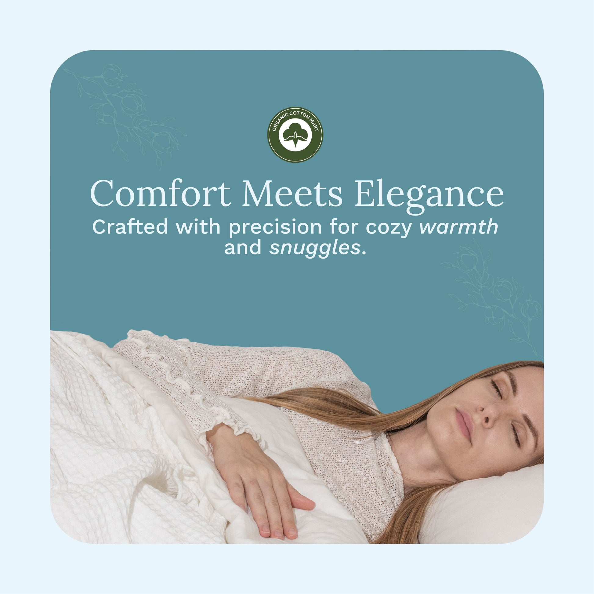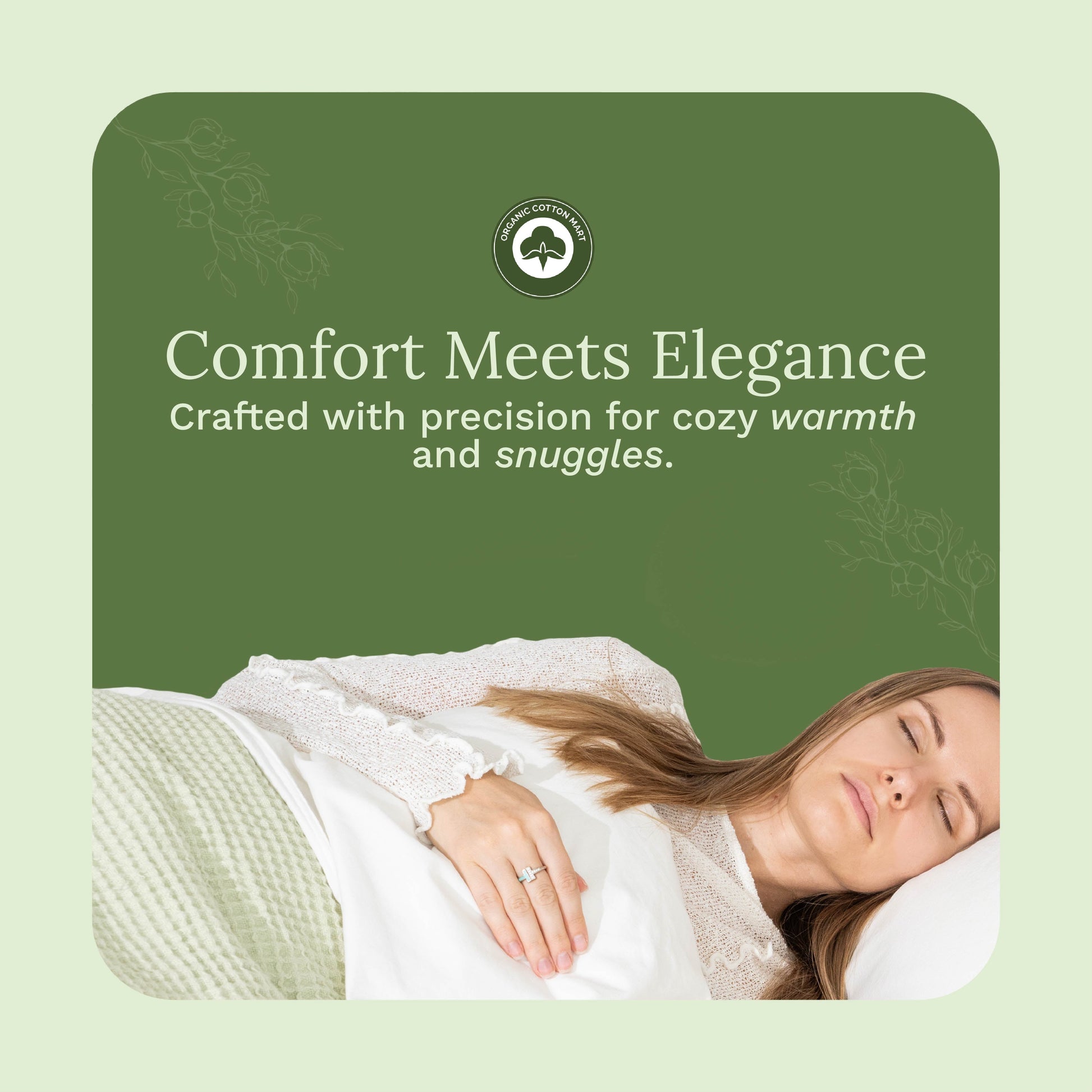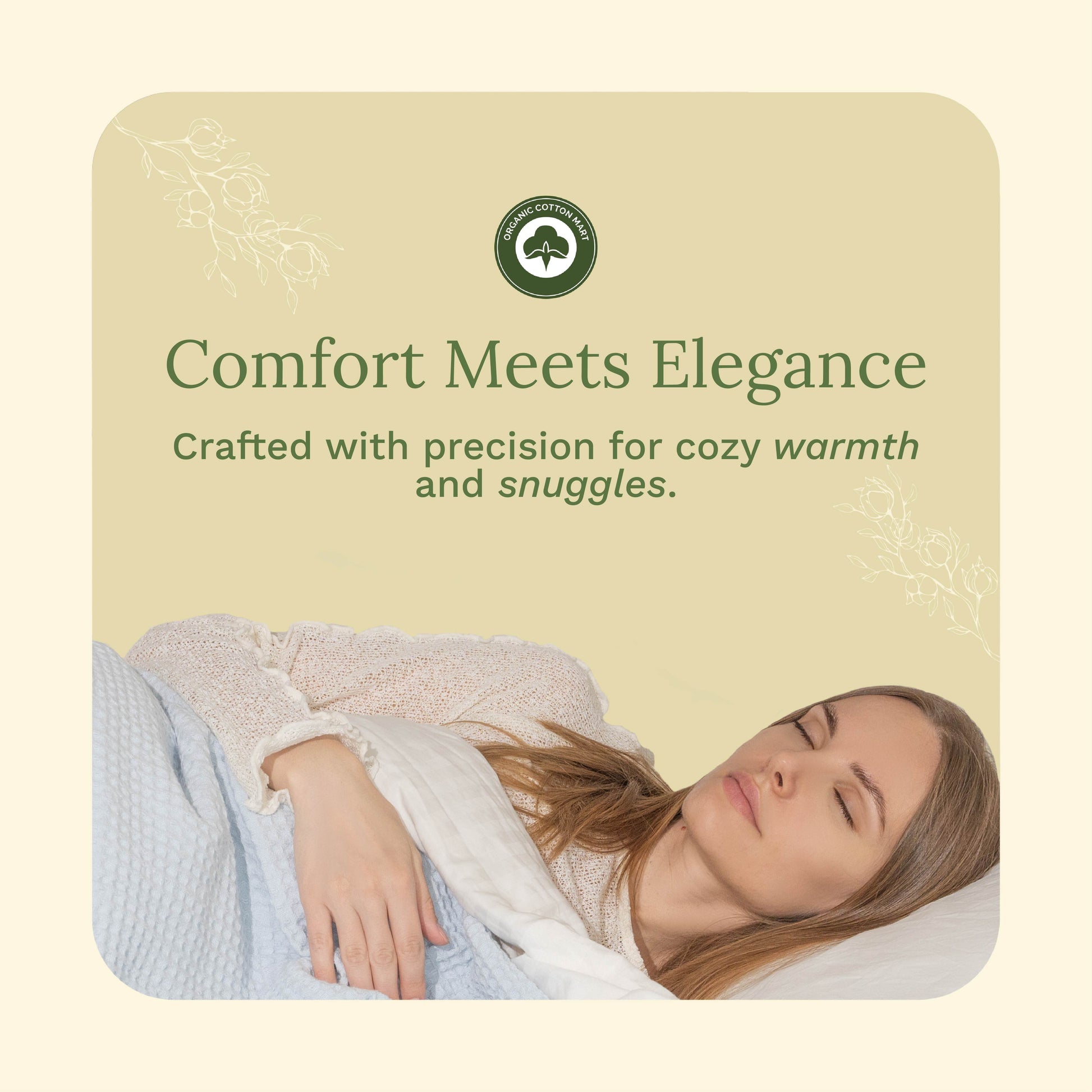 Whether you want to cuddle up in warmth during winter nights or just stay cozy during the summer, our lightweight blanket has you covered. Enjoy a peaceful night’s sleep with our cozy, warm, and breathable toxic-free cotton waffle blanket!