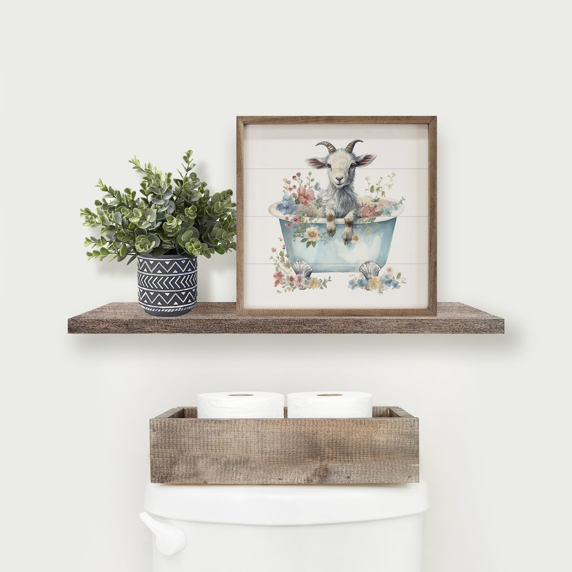 This beautiful unique piece a simple way to bring beauty and charm to any wall or shelf within the home. It is made from high quality American hardwood planks with a hand painted face, and printed with UV cured ink, and is framed in a natural walnut frame. Each piece is unique with its own personality, marks, wood grain, and look. Easy to clean with a dry cloth.