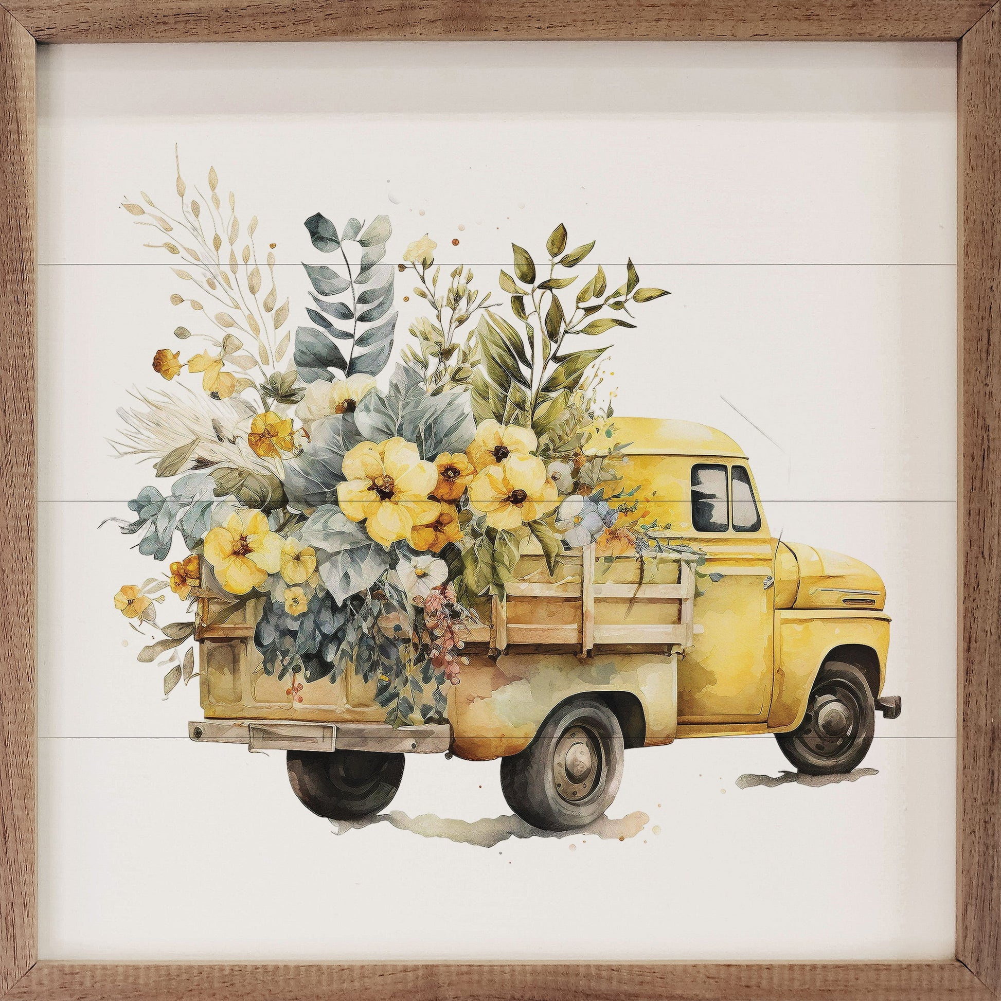 This unique piece is a simple way to bring beauty and charm to any wall or shelf within the home. it is made from high quality American hardwood planks with a hand painted face, and printed with UV cured ink, and is framed in a natural walnut frame. Each piece is unique with its own personality, marks, wood grain, and look. Easy to clean with a dry cloth.